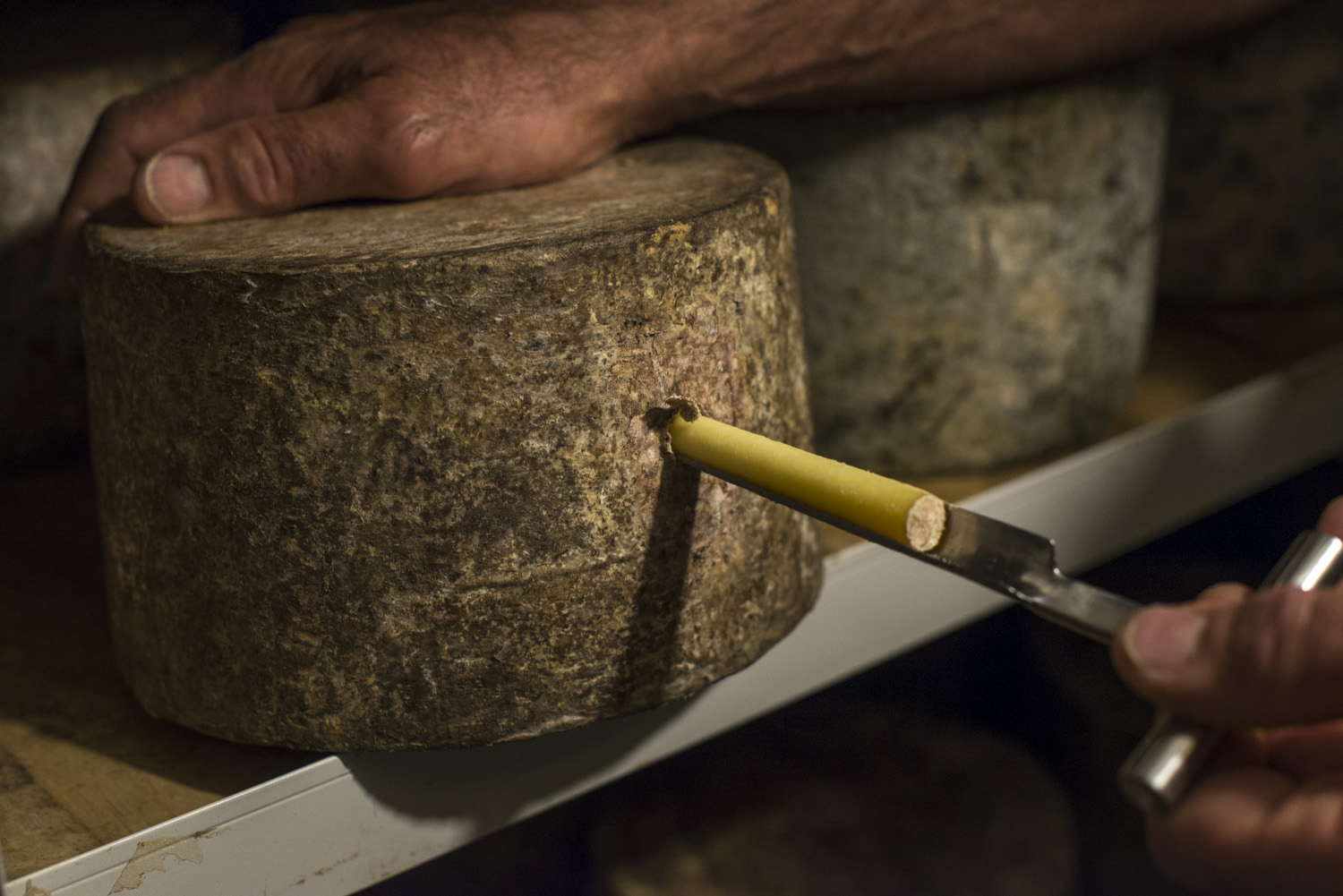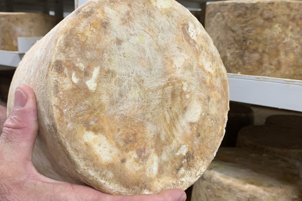 Whilst maturing on pine boards,it is hand turned and rubbed about every 3 weeks,this gives our cheese its distinctive flavour.